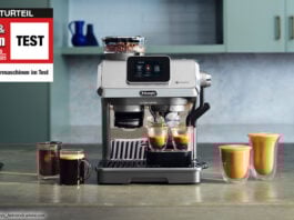 Der Kaffeevollautomat bietet Espresso, Caffè Crema, XL Caffè Crema sowie Heißwasser und richtet sich an Nutzende mit begrenztem Platzangebot.