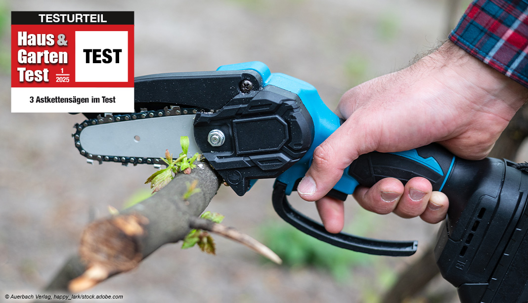 Dieser Test erschien in der Ausgabe 1/2025 der HAUS & GARTEN TEST. Dort finden Sie die Ergebnisse unseres elektrischen Astkettensägen-Tests mit allen technischen Details, Auswertungen und unserem Testurteil. Auch als E-Paper zum Sofort-Download!