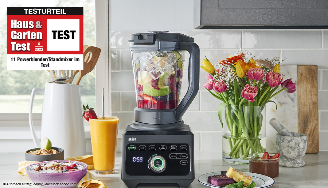 Dieser Test erschien in der Ausgabe 4/2023 der HAUS & GARTEN TEST. Dort finden Sie die Ergebnisse unseres elektrischen Powerblender/Standmixer-Tests mit allen technischen Details, Auswertungen und unserem Testurteil. Auch als E-Paper zum Sofort-Download!