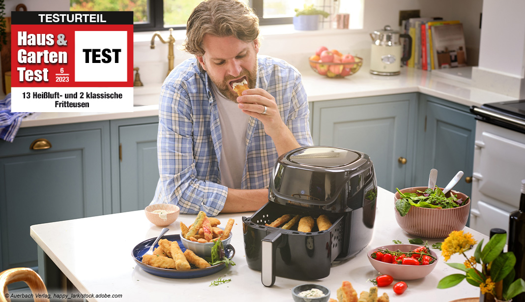 Dieser Test erschien in der Ausgabe 6/2023 der HAUS & GARTEN TEST. Dort finden Sie die Ergebnisse unseres elektrischen Heißluft- und klassische Fritteusen-Tests mit allen technischen Details, Auswertungen und unserem Testurteil. Auch als E-Paper zum Sofort-Download!