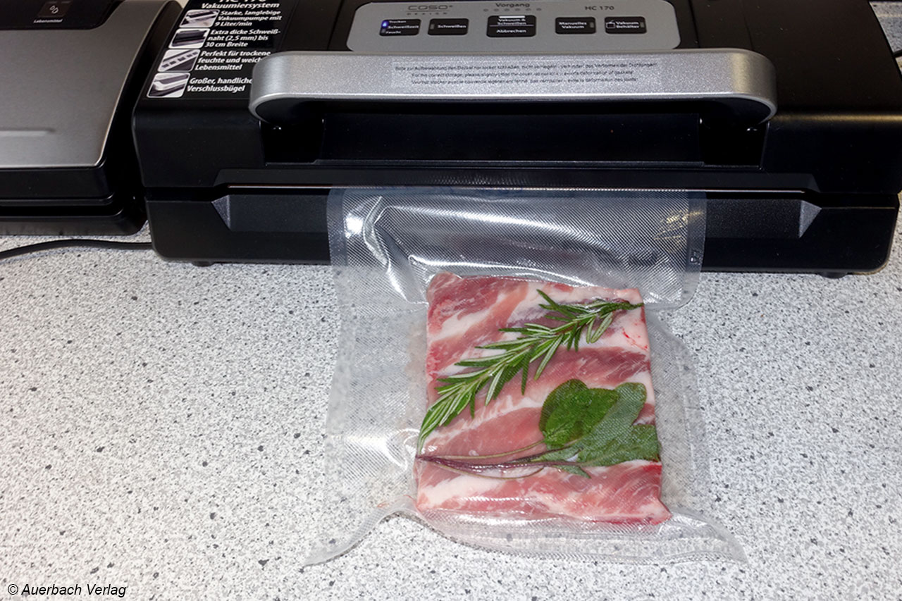 Lebensmittel wie frisches Fleisch. Außerdem ist das Vakuumieren Voraussetzung